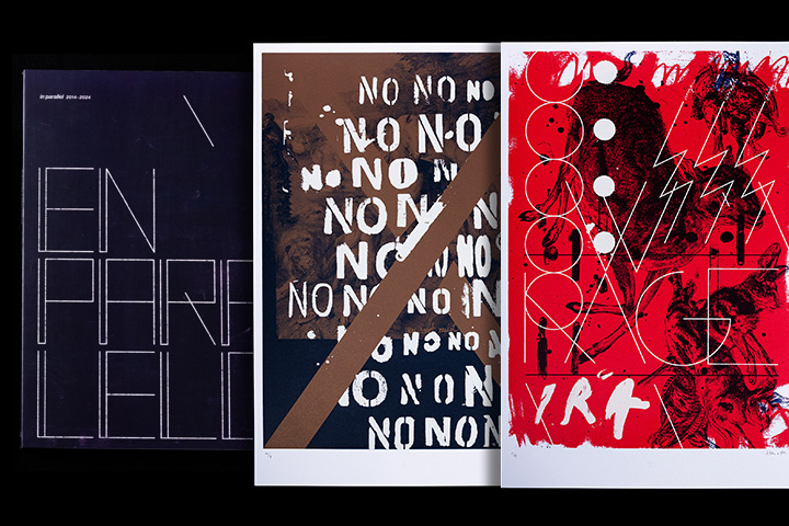 “In Parallel” is a poster design exercise based on a back-and-forth methodology, in which two designers simultaneously start with an idea or the first step of a poster, and then exchange it. Thus, through several rounds of back-and-forth, working in parallel on two pieces at the same time, the creative process is altered and the final outcome becomes unpredictable.